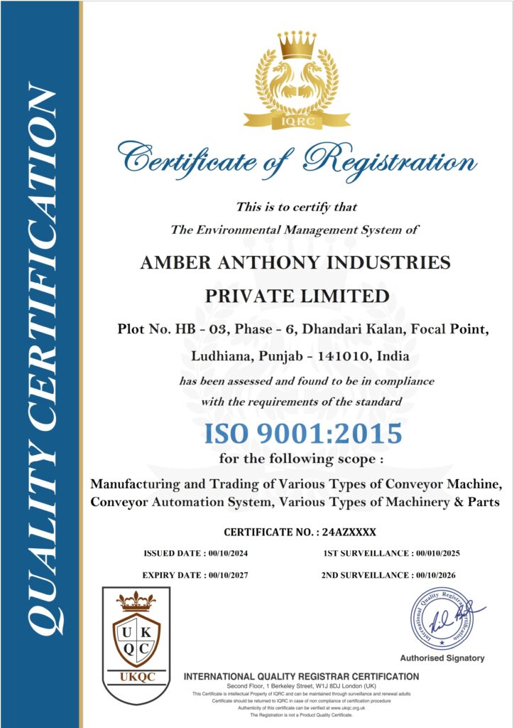 Amber Anthony Industries (AAI) demonstrates its commitment to maintaining high-quality standards through the implementation of advanced and continuously evolving quality management systems. The company has developed a deep understanding of process optimization and quality control by proactively embracing new technologies and methodologies. These efforts have earned AAI the following certifications: