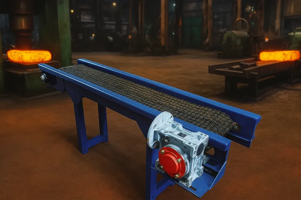 Amber Anthony Private Limited’s High-Quality Forging Conveyors are robust and heat-resistant solutions designed for heavy-duty applications in the forging industry. Built to handle high temperatures and heavy loads, these conveyors ensure seamless material handling in demanding environments.